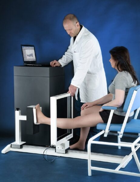 Zur Messung wird der Messrahmen innerhalb von etwa 3 Sekunden einmal vorwärts und einmal rückwärts über die Extremität verfahren.